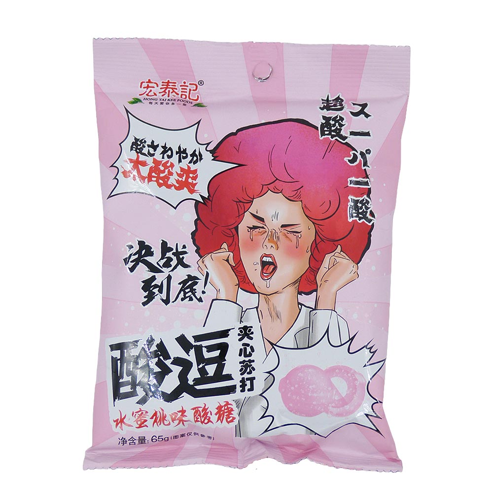 Hong Tai Kee Foods A Bala Azeda Sabor Pêssego 65g da Hong Tai Kee Foods é uma irresistível guloseima que combina o sabor suculento e doce do pêssego com uma emocionante acidez. Cada bala desta embalagem proporciona uma experiência de sabor intensa e revigorante, perfeita para aqueles que apreciam um toque de acidez em seus doces. A explosão de sabor frutado traz a suculência do pêssego e uma pitada de azedume que desperta os sentidos, transformando o momento de consumo em algo refrescante e delicioso. Design Atraente: Embalagem vibrante que se destaca nas prateleiras. Apelo Emocional: A experiência sensorial intensa é transmitida até mesmo em seu visual externo. Elementos Culturais: Características asiáticas agregam um toque exótico ao produto. Praticidade: Fácil abertura para consumo imediato. Quantidade Ideal: Embalagem de 65g perfeita para saborear sozinho ou compartilhar. Aromatizantes especiais para um sabor único e marcante. Textura equilibrada entre o doce e o azedo. Conservar em local seco e arejado para manter a qualidade. Desfrute das Balas Azedas Sabor Pêssego Hong Tai Kee Foods a qualquer hora do dia. Ideal como um lanche saboroso ou para compartilhar momentos especiais com amigos e familiares. Experimente combiná-las com uma bebida refrescante para potencializar a experiência de sabor. Marca: Hong Tai Kee Foods Peso: 65g Ingredientes: Açúcar, xarope de glicose, sal, ácido cítrico, entre outros. Recomendação de armazenamento: Local seco e arejado Permita-se vivenciar o incrível sabor das Balas Azedas Sabor Pêssego 65g e transforme seu momento em uma experiência emocionante e cheia de sabor.Bala Azeda Sabor Pêssego 65g