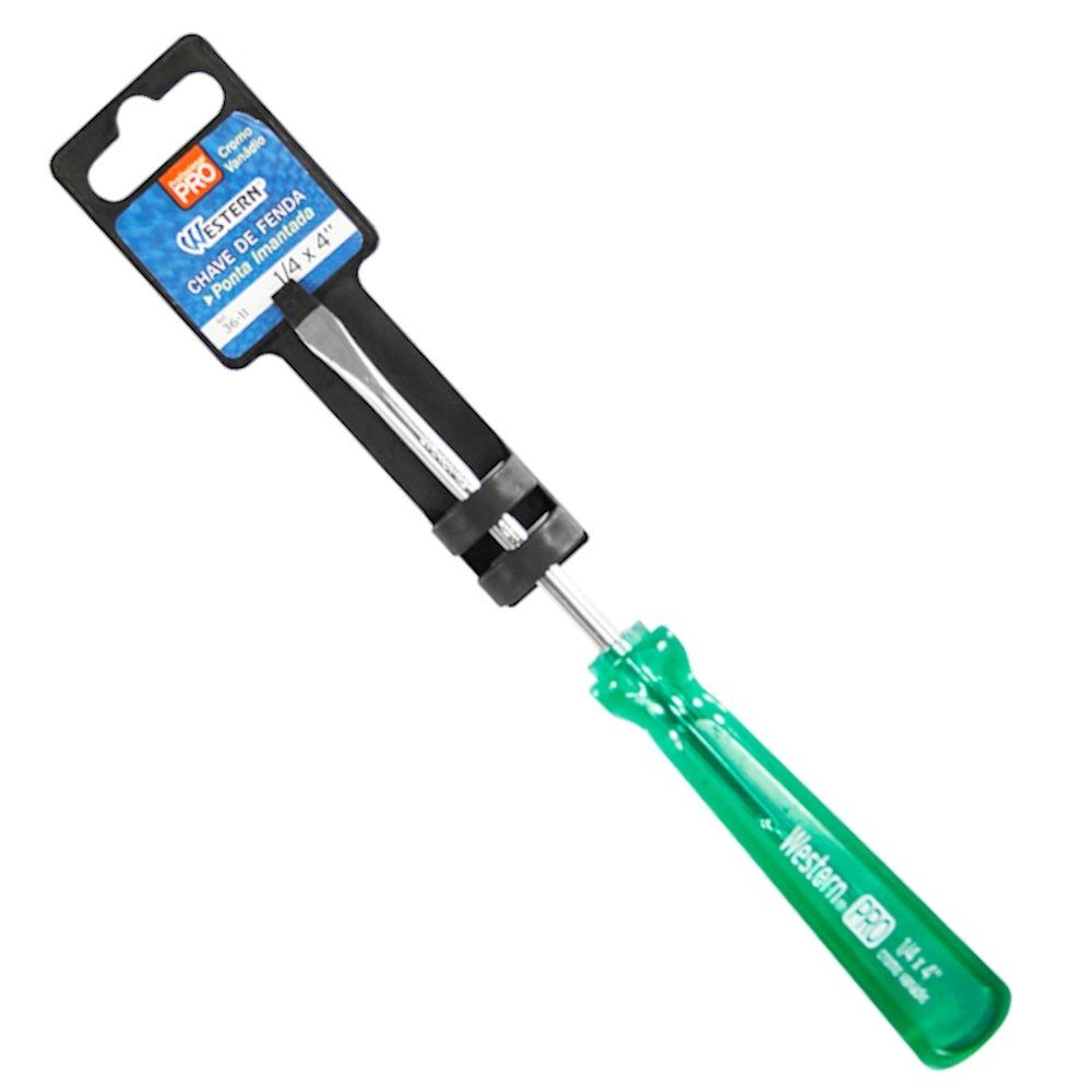 Desempenho e Qualidade em suas Mãos A Chave de Fenda 1/4x4 da marca Western é a ferramenta ideal para quem busca praticidade e eficiência em pequenos reparos domésticos. Com dimensões de 22 x 1,5 x 1,5 cm e peso de 385g, esse produto é confeccionado em material de alta qualidade, o cromo vanádio, garantindo durabilidade e resistência. Material de Cromo Vanádio: Maior resistência e durabilidade. Marca Reconhecida: Western é sinônimo de qualidade em ferramentas. Dimensões Compactas: Facilidade para armazenar e transportar. Versatilidade: Ideal para trabalhos diversos em casa ou no trabalho. A Chave de Fenda 1/4x4 - Western é perfeita para apertar ou soltar parafusos com encaixe Phillips, seja em móveis, eletrodomésticos ou outros objetos. Seu design ergonômico proporciona conforto durante o uso, evitando fadiga nas mãos. Utilize a Chave de Fenda 1/4x4 para ajustar parafusos de tamanhos variados, garantindo firmeza e precisão. Mantenha a ferramenta sempre limpa e seca após o uso, prolongando sua vida útil. Marca: Western Material: Cromo Vanádio Categoria: Casa Dimensões: 22 x 1,5 x 1,5 cm Com a Chave de Fenda 1/4x4 - Western, tenha em mãos uma ferramenta confiável e eficiente para suas necessidades diárias.Chave de Fenda 1/4x4 - Western