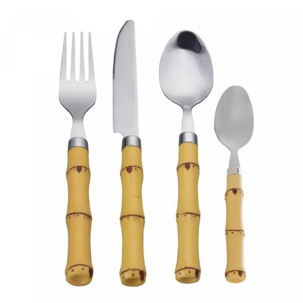 Design Exclusivo: Cabos com acabamento que simula bambu, trazendo um toque natural e sofisticado À sua mesa.