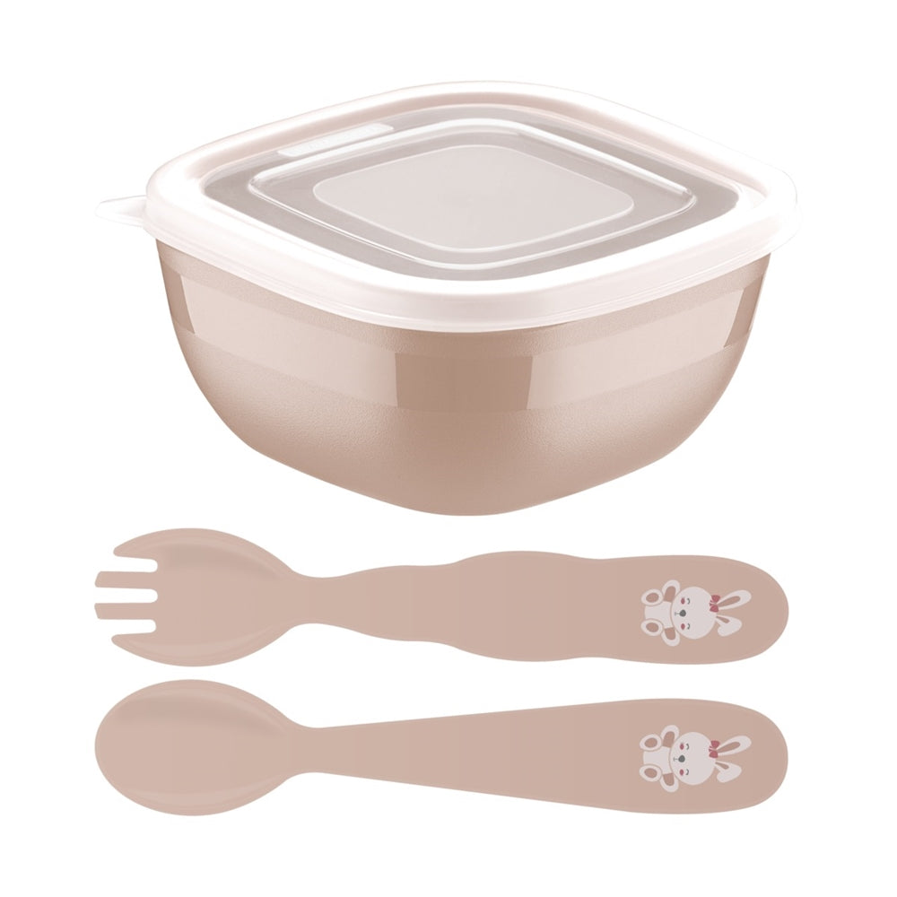 Jogo com 2 Talheres e Pote Infantil Le Petit Rosa