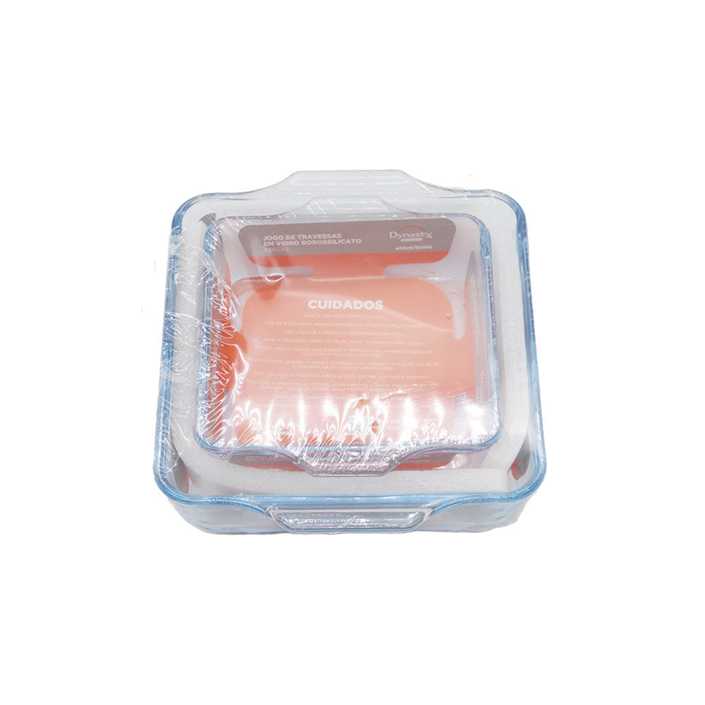 Jogo com 2 Travessas Quadradas em Vidro Borossilicato e Alça Dynasty