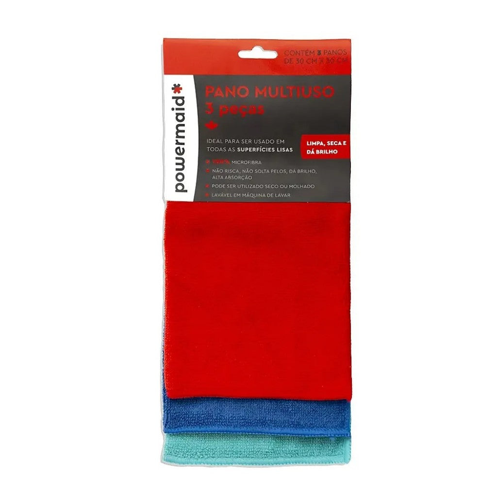 Kit 3 Panos Microfibra Multiuso Sortido 30x30cm Powermaid