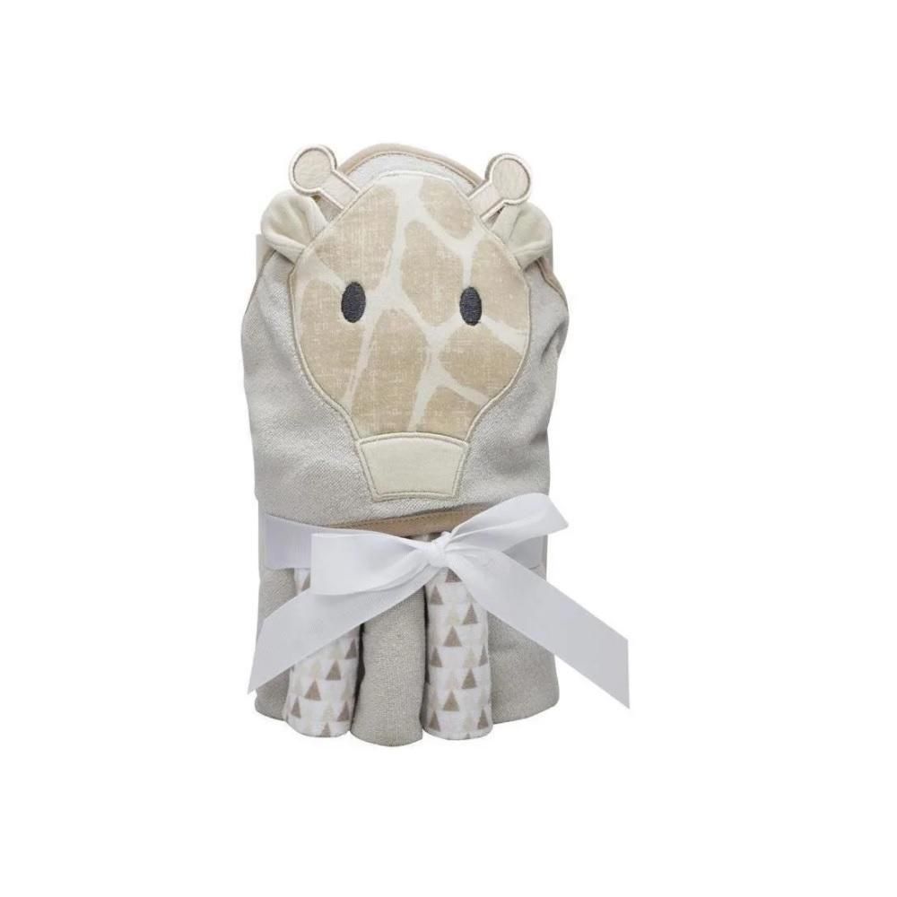 Kit Toalha com Capuz 66x76cm e Toalha de Boca 23x23cm Girafa Bege