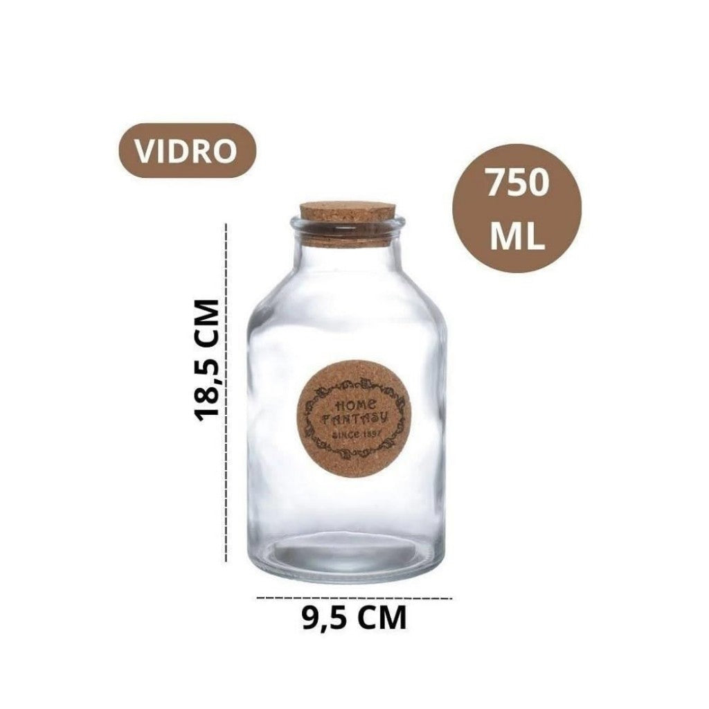 Pote Bergamo Vidro com Tampa em Cortiça 9,5x18,5cm Hauskraft