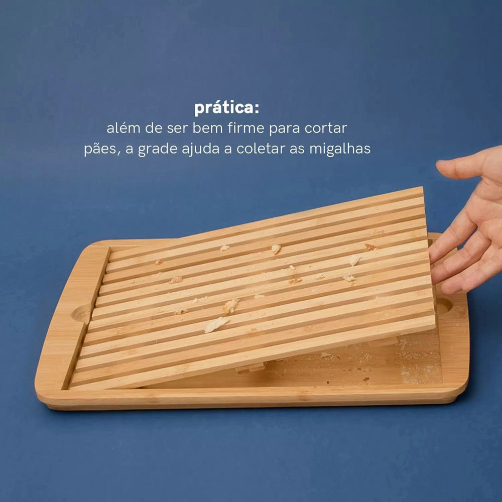 A Tábua Migalheira de Pão em Bambu da OIKOS é perfeita para cortar pães. Além de ser bem firme para cortar pães, a grade ajuda a coletar as migalhas e evitar sujeira na casa.