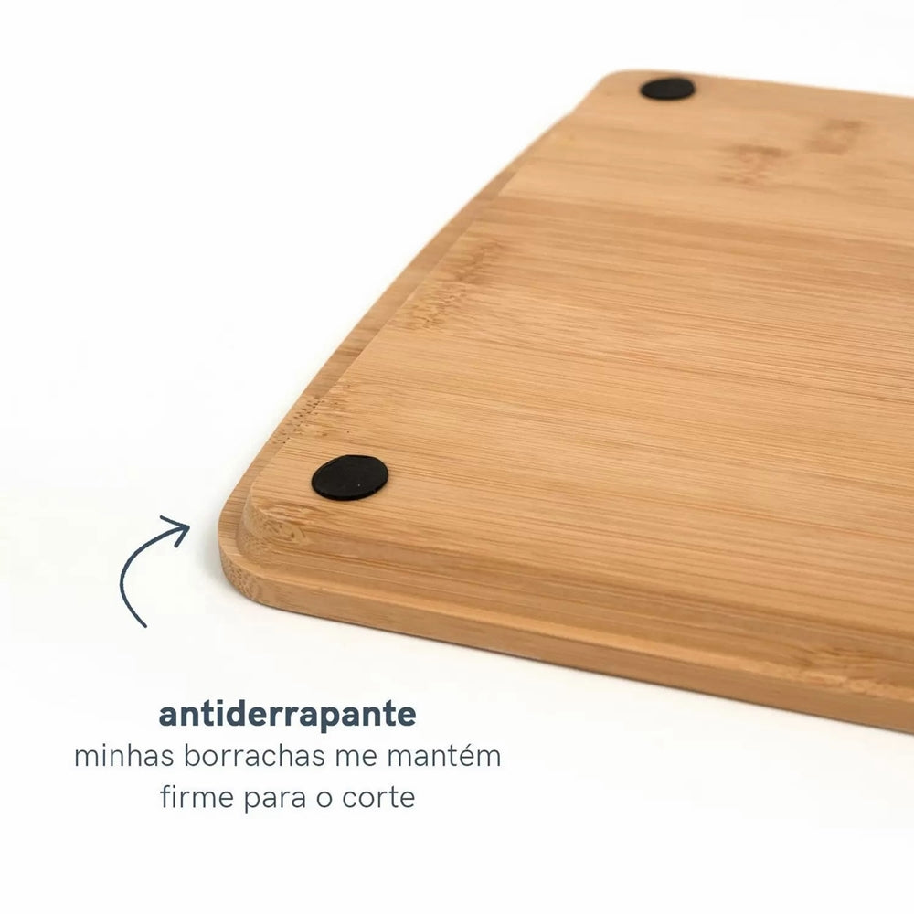 Em Bambu, material leve e ecologicamente correto, é resistente e com propriedades que evitam a proliferação de bactérias. Além disso, é durável e higiênica.