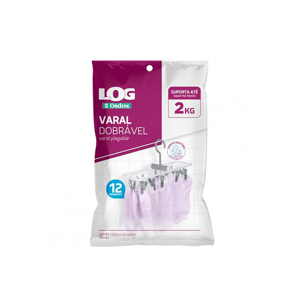 O Varal Dobrável da linha Log conta com 12 prendedores e suporta até 2 kg.