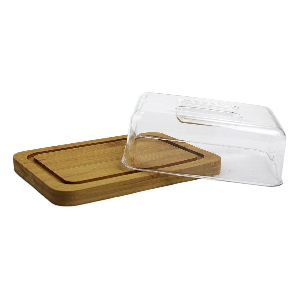 Tampa de acrílico transparente que permite visualizar o conteúdo e mantém a manteiga protegida e fresca.
