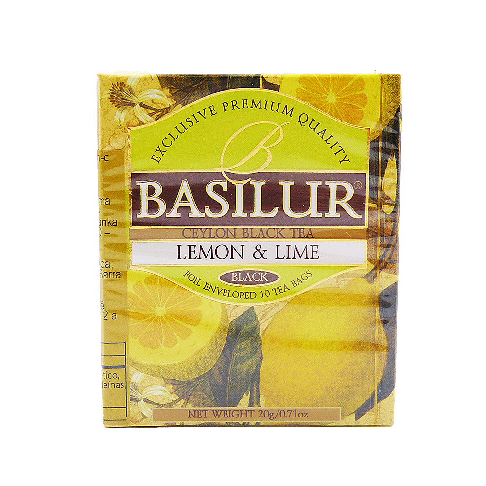 Desfrute de uma explosão refrescante de sabores com o Chá Preto Limão e Lima da Basilur, um blend singular em cada sachê de 20g.