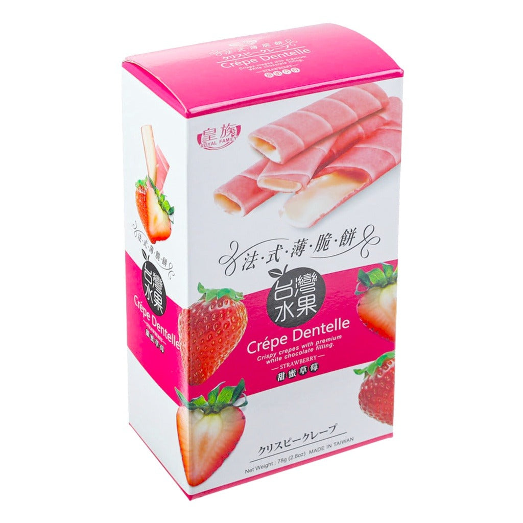 Crepe Dentelle é um delicioso biscoito crepe de morango e recheio de chocolate branco. Essa delícia vem diretamente de Taiwan. Perfeito para ser apreciado com um chá ou como um docinho no seu dia. Prove esse e os outros sabores disponíveis em nossa loja: banana com chocolate e manga e leite.